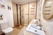 -Duża łazienka z kabiną prysznicową, eleganckim blatem oraz miejscem na pralkę i suszarkę