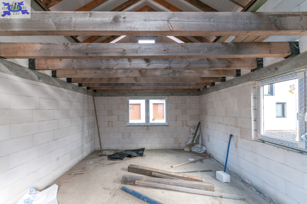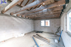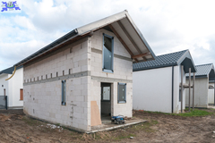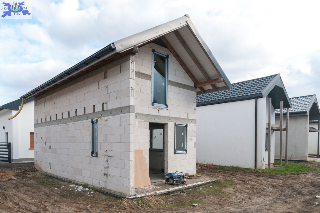 Dom w stanie surowym zamkniętym ze stolarką okienną.