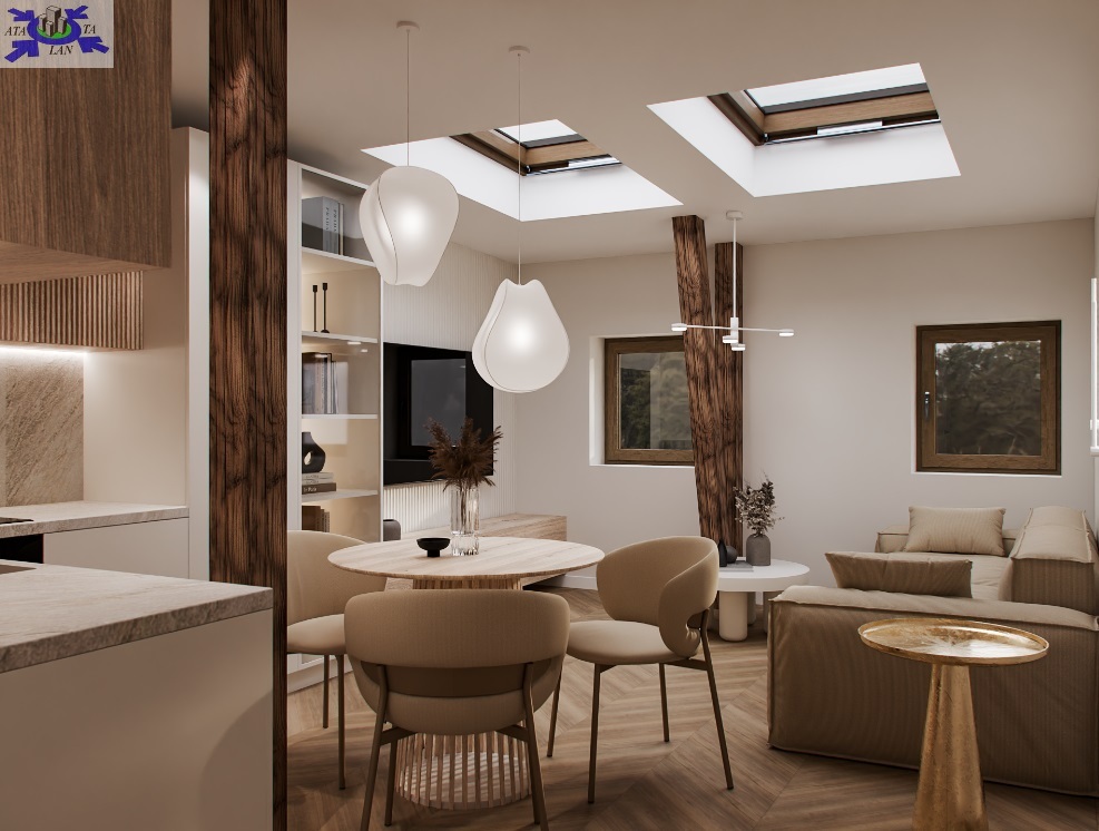 - pokój dzienny połączony z aneksem kuchennym 20,00 m2.