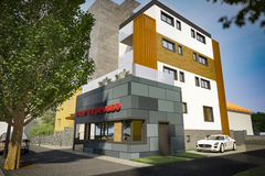 Dodatkowym atutem jest projekt/koncepcja przebudowy i rozbudowy obiektu o dodatkowe 2 kondygnacje (łącznie 4 kondygnacje), przeprojektowanie frontowej elewacji w stylu nowoczesnym, z płaskim dachem z ogólnodostępnym tarasem na dachu, budynek z windą.