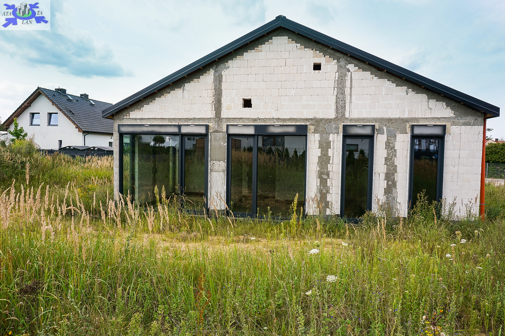 Dom z bloczków, okna aluminiowe w systemie Reynaers Aluminium MasterLine 8Hl+, więźba dachowa z drewna skandynawskiego,