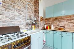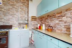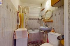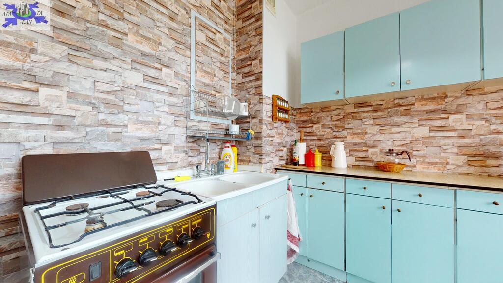 Kuchnia widna z meblami i sprzętem agd, pozostająca w cenie mieszkania. Łazienka razem z wc w glazurze i terakocie starego typu.