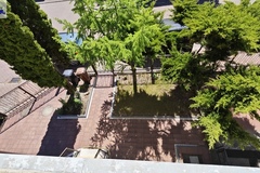 Niewątpliwym atutem nieruchomości jest ładnie zagospodarowany ogród (mniejsza część znajduje się od strony ulicy, zaś główny ogród znajduje się na tyłach nieruchomości). Ogród jest przede wszystkim pokryty ładnie utrzymanym trawnikiem z alejkami wyłożonymi polbrukiem plus nieliczne drzewka (wierzba oraz dwie wiśnie) i dodatkowo miejsce do wypoczynku pod rozstawianym namiotem. Ogródek jest bardzo słoneczny. Poza garażem w bryle budynku - na posesję można wjechać przez drugą bramę wjazdową, aby zaparkować dwa kolejne samochody (przed posesją kolejne dwa miejsca postojowe).