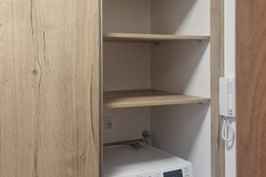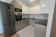 W kuchni meble w zabudowie wraz ze wysokiej jakości sprzętem AGD.