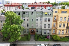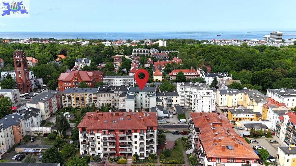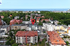 Mieszkanie położone jest w zielonej okolicy - do Parku Chopina mamy 200m, a do Parku Zdrojowego 450m. Najbliższy sklep typu Żabka oddalony jest o zaledwie 300m, w pobliżu znajdziemy też restauracje, przedszkola, liceum, place zabaw i liczne atrakcje Świnoujścia, m. in. Fontannę Śruba. Tuż obok budynku usytuowany jest przystanek skąd odjeżdżają autobusy linii 6 i A. Do promenady odległość wynosi 850m, a do Plaży 1km.