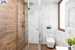 Parter otwarta przestrzeń dzienna z kuchnią, częścią jadalną i wypoczynkową oraz łazienka z kabiną prysznicową. Rozkładana sofa pozwala na zakwaterowanie dodatkowych osób
