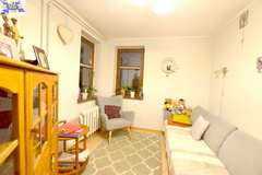 Salon o powierzchni około 23m2 z wyjściem na balkon od strony zamkniętego podwórka (południe), dwie sypialnie o powierzchni około 13m2 oraz około 12m2, kuchnia o powierzchni około 7m2.