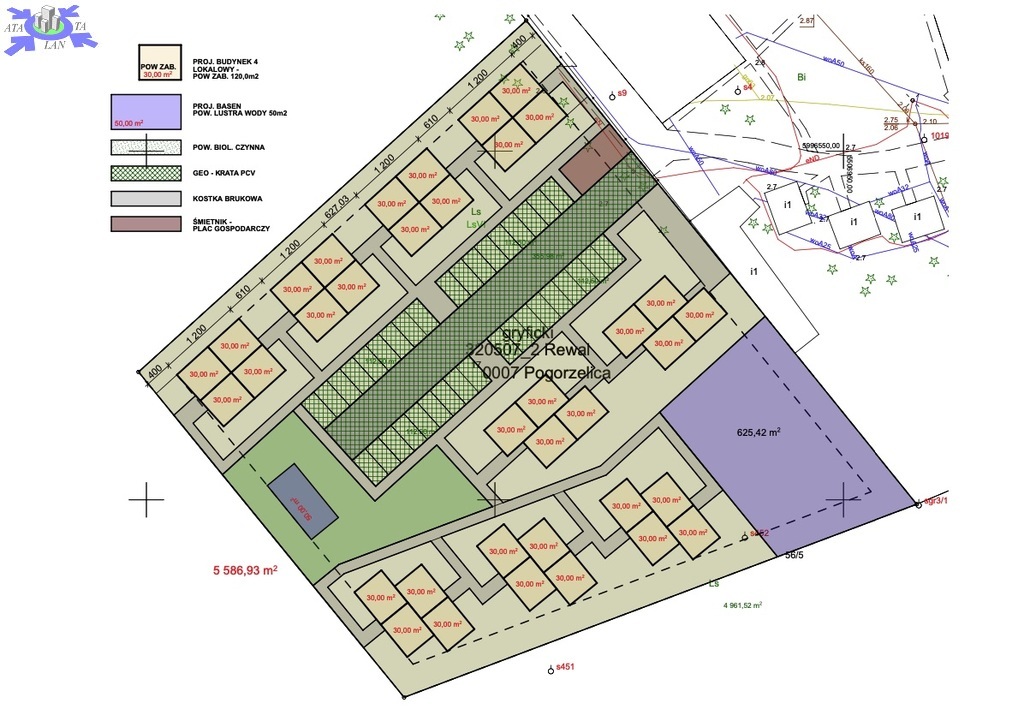 Zabudowa do 20% 1117 m2 (z uwzględnieniem np. basenu)