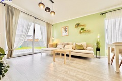 Ogromnym atutem jest cisza i spokój ze względu na brak sąsiadów od strony ogródka i tarasu budynku.