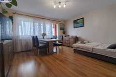 salon - ok. 20,6 m2 z wyjściem na zabudowany balkon z rozsuwanymi oknami