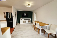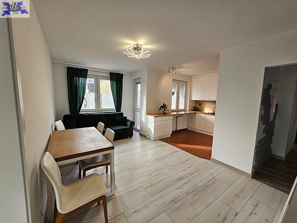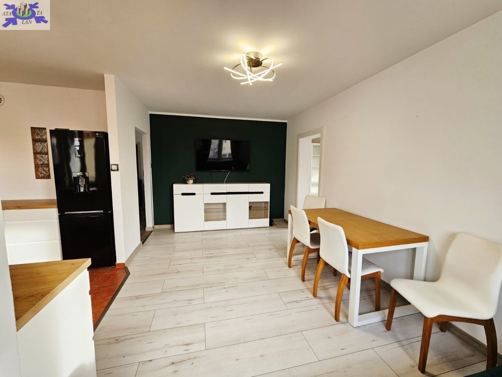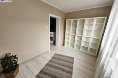 Z salonu jest wyjście na przestronny balkon wyposażony w zamontowaną markizę chroniącą latem przed słońcem.