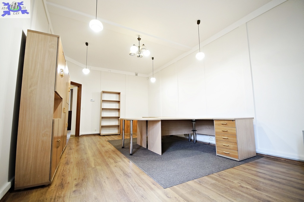 - Pierwszy pokój biurowy od ulicy o pow. 23,56 m2, uposażony w biurko, stół i pozostałe meble biurowe, w tym również wydzielone pomieszczenia na dokumentację oraz serwerownie.