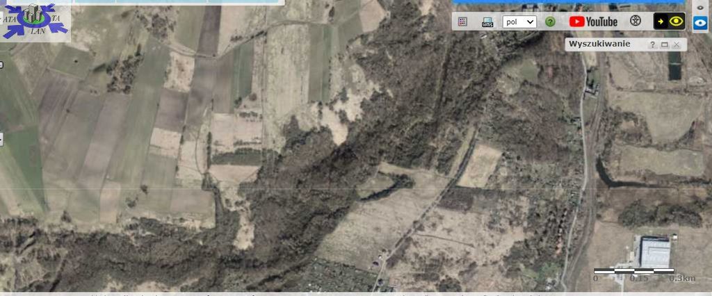 Brak planu zagospodarowania przestrzennego. ( w opracowaniu, projekt pod funkcję zabudowy mieszkaniowej jednorodzinnej). Działka nie ma sieci uzbrojenia podziemnego. W kształcie prostokata o wymiarach szer. ok 28 m, dł.ok 109 m, krótszym bokiem siewowana do drogi dojazdowej( gruntowej). Wjazd na działke od wschodu, ogród od południa.