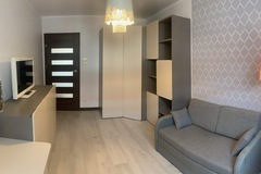 Mieszkanie jest gotowe do wydania wraz z całym wyposażeniem. W jednej z sypialni meble VOX. W salonie meble drewniane wykonane na zamówienie.