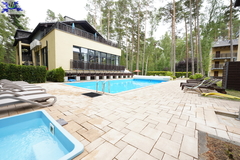 -przestronny basen zewnętrzny(czyny w okresie letnim z podgrzewaną wodą)