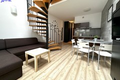 -dwupoziomowy układ(funkcjonalna antresola i efektowne schody spiralne)