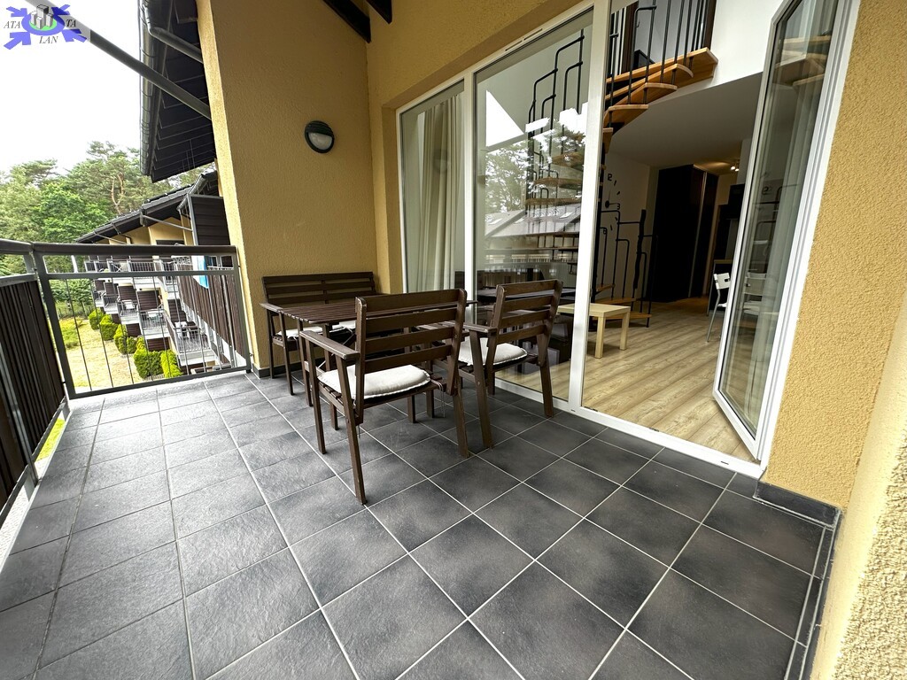 Dwupoziomowy apartament (2 piętro) nad morzem przy samym lesie z przestronnym balkonem o powierzchni 9 m2 oraz basenem zewnętrznym (podgrzewana woda). W pobliżu Nadmorska Kolej Wąskotorowa. Idealny zarówno do zamieszkania na stałe, jak i apartament wakacyjny lub inwestycja pod wynajem. Gotowy do zamieszkania.