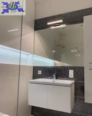 Mieszkanie składa się z 2 sypialni, garderoby, salonu z aneksem kuchennym (lodówka, płyta indukcyjna, piekarnik i zmywarka), łazienki, pomieszczenia gospodarczego i balkonu.