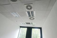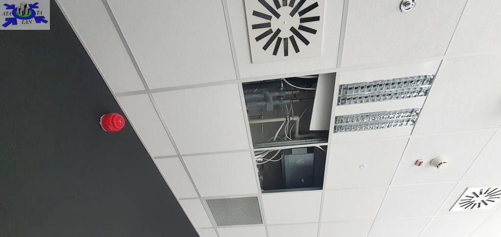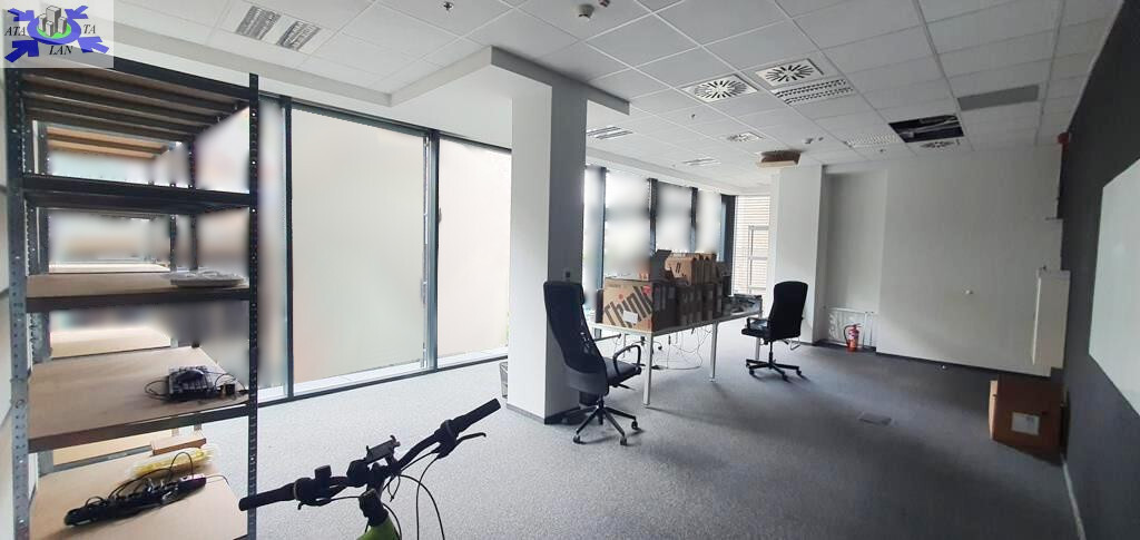 Na podłogach lokalu wykładzina biurowa pod spodem podniesiona tzw. podłoga techniczna z puszkami podłogowymi, sufity podwieszane z oświetleniem rastrowym, systemem ogrzewania i klimatyzacji z regulacją strefową.