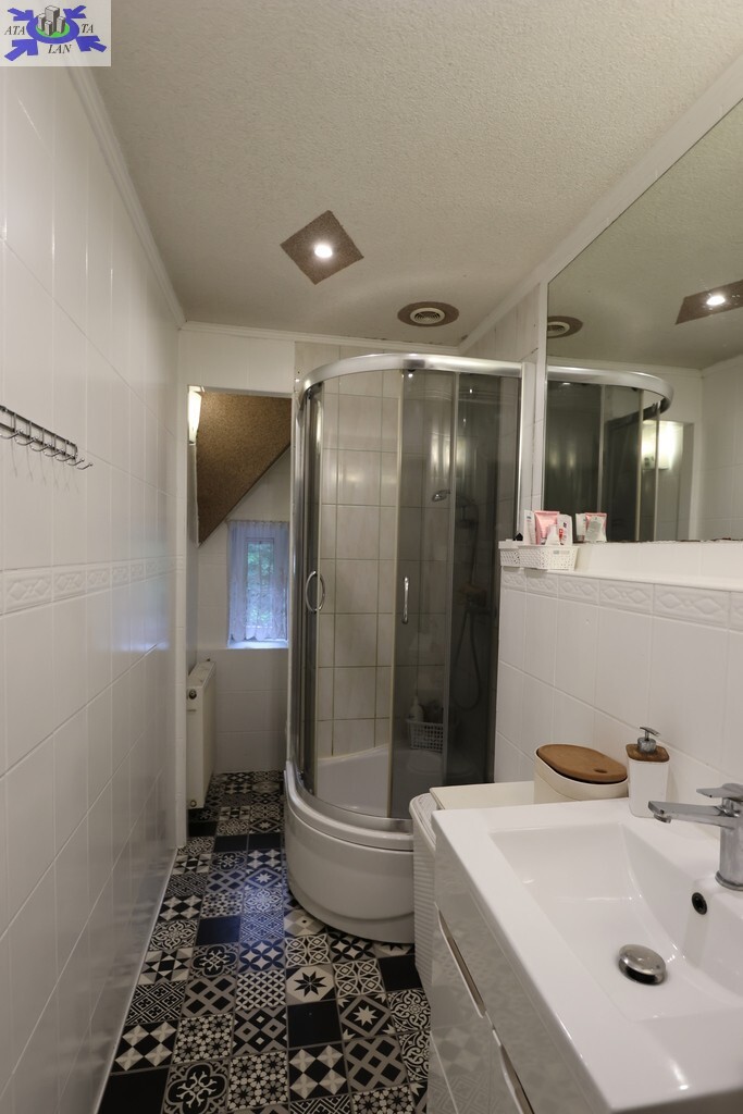 - łazienka - odświeżone, pomalowane płytki, na podłodze panele winylowe, kabina prysznicowa, toaleta, piec vaillant do grzania wody.