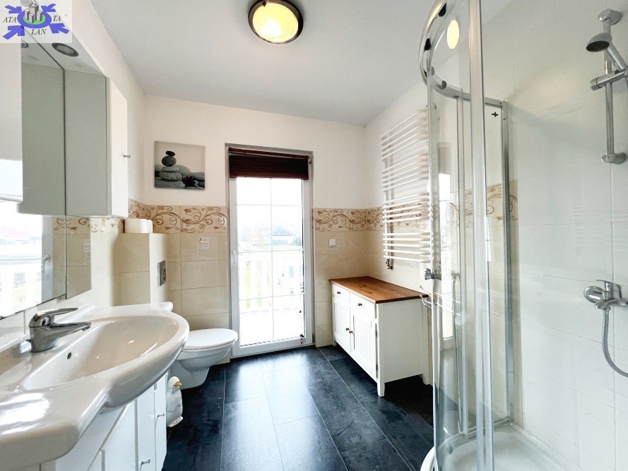 Na piętrze znajdują się cztery przytulne sypialnie, zapewniające spokojny sen i miejsce do wypoczynku. Nowoczesna łazienka uzupełnia górny poziom.