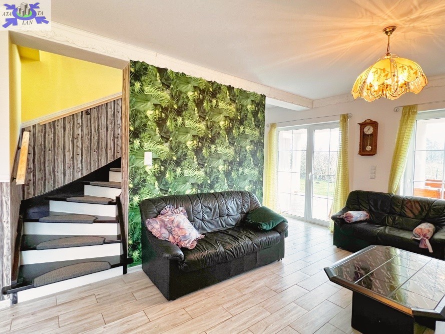 Ta wyjątkowa nieruchomość oferuje niepowtarzalną jakość życia w idyllicznej lokalizacji. Przestronny taras na piętrze otwiera zapierający dech w piersiach widok na rozległe łąki, natomiast zadaszony taras na parterze zaprasza do relaksu i prowadzi bezpośrednio do starannie zagospodarowanego ogrodu - to idealne miejsce, aby w pełni cieszyć się ciszą i spokojem natury.