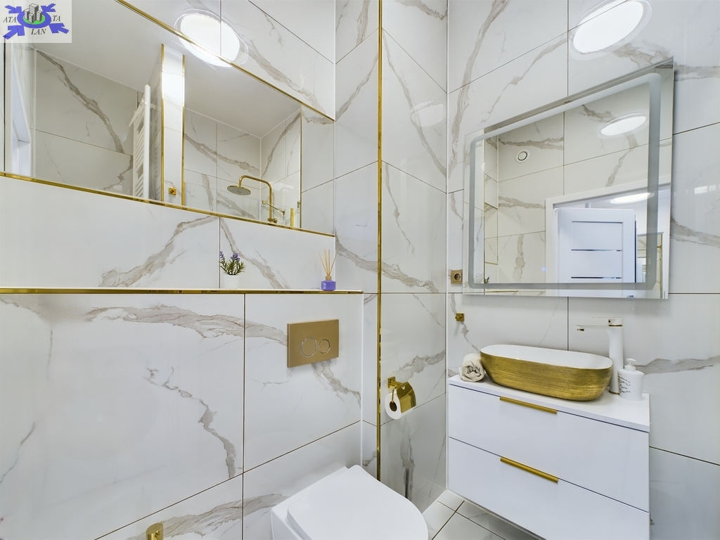 Wysoki standard wykończenia. Apartament został wykończony i urządzony materiałami najwyższej jakości z dbałością o każdy szczegół.