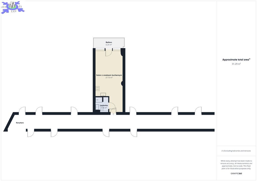Apartament o powierzchni 30,89 m2 znajduje się na 3 piętrze .