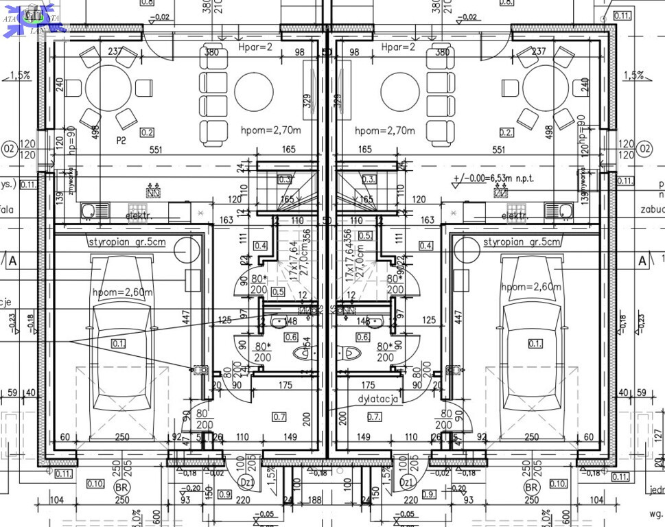 - garaż - 23,51 m2.