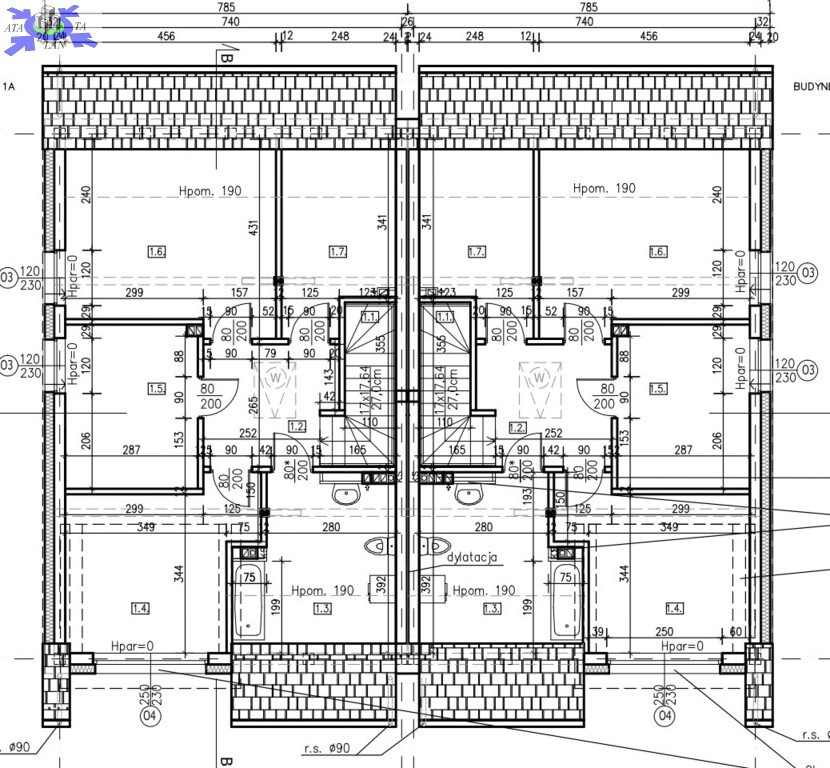 Bliźniak o powierzchni użytkowej 135 m2. (powierzchnia całkowita - 148,7 m2) posadowiony na działce o powierzchni około 350 m2.