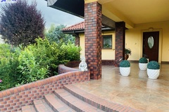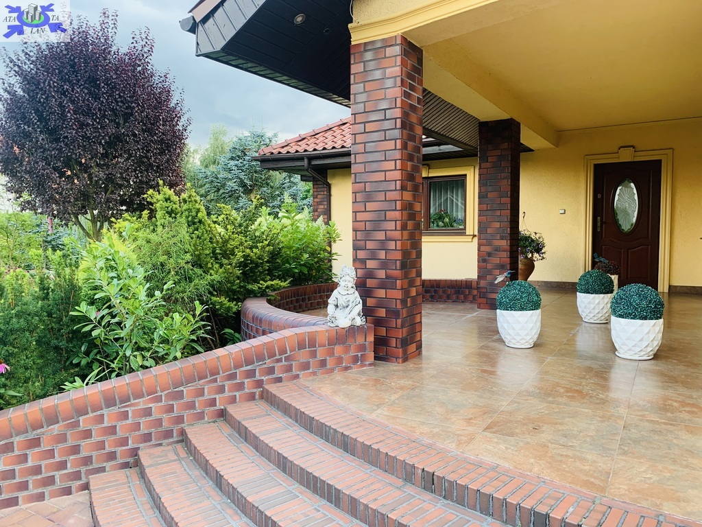 Garaż dwustanowiskowy (33 m2) z bramą automatyczną, utwardzony podjazd z kostki klinkierowej.