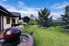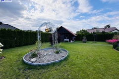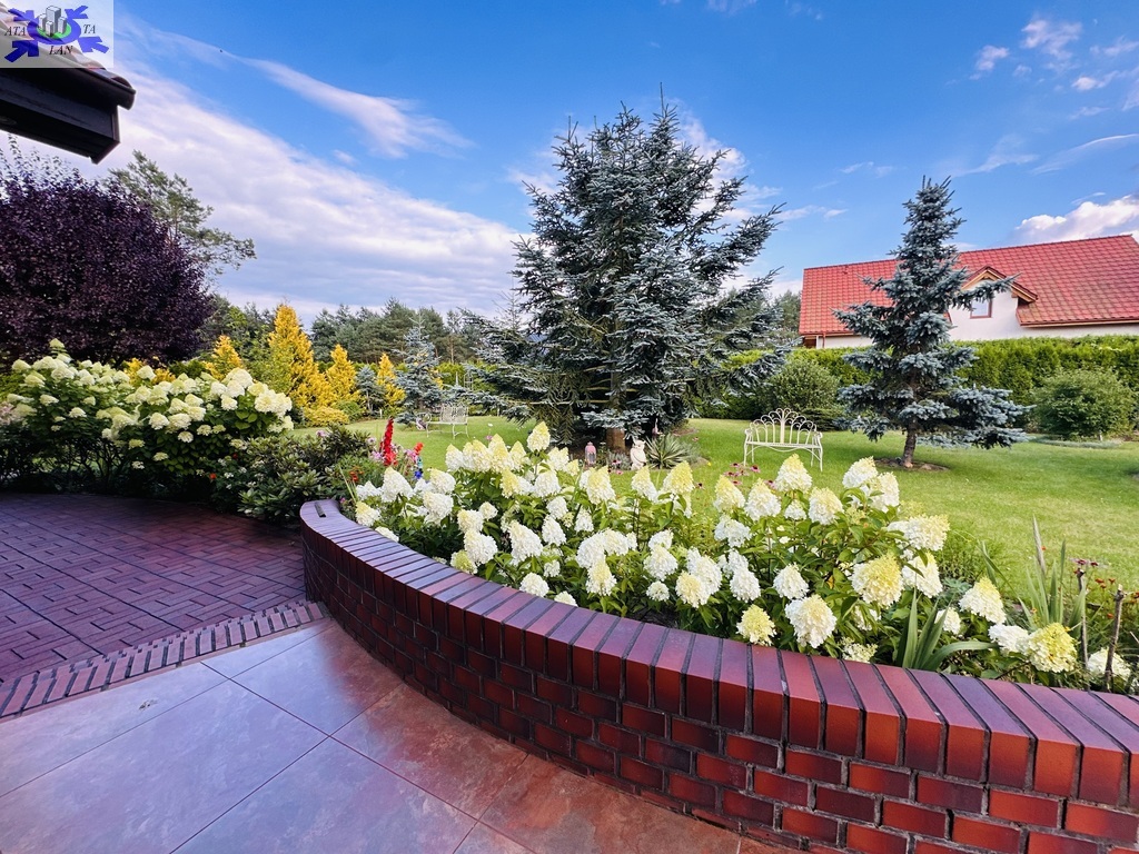 Pięknie zagospodarowany ogród o powierzchni 1400 m2 z oryginalną architekturą ogrodową pergolą, fontanną, drewnianą altaną z antresolą , tarasem rekreacyjnym.