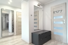 Przedpokoju z dużymi lustrami, które dodają wnętrzu lekkości i optycznie je powiększają,