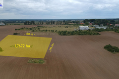 Kształt terenu zbliżony do prostokąta. Wymiary terenu to ok. 100m x 171m x 111m x 163m. Użytek RIVa.