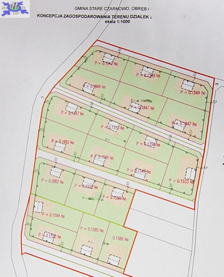 Powierzchnia działek od 1500m2 do 2000m2, powierzchnia zabudowy do 20% powierzchni działki, powierzchnia biologicznie czynna min. 60% powierzchni działki.