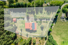Nieruchomość posadowiona jest na dużej, ogrodzonej działce o powierzchni 5 600 m2, w otoczeniu natury i lasów. Na terenie znajdują się liczne nasadzenia świerki, sosny, tuje, modrzewie, dęby oraz prywatny świerkowy las, będący częścią Puszczy Noteckiej. Dodatkowym atutem jest kort tenisowy ze ścianką treningową, a także wolnostojący garaż przeznaczony na samochód oraz sprzęt ogrodowy, np. traktorek do koszenia.