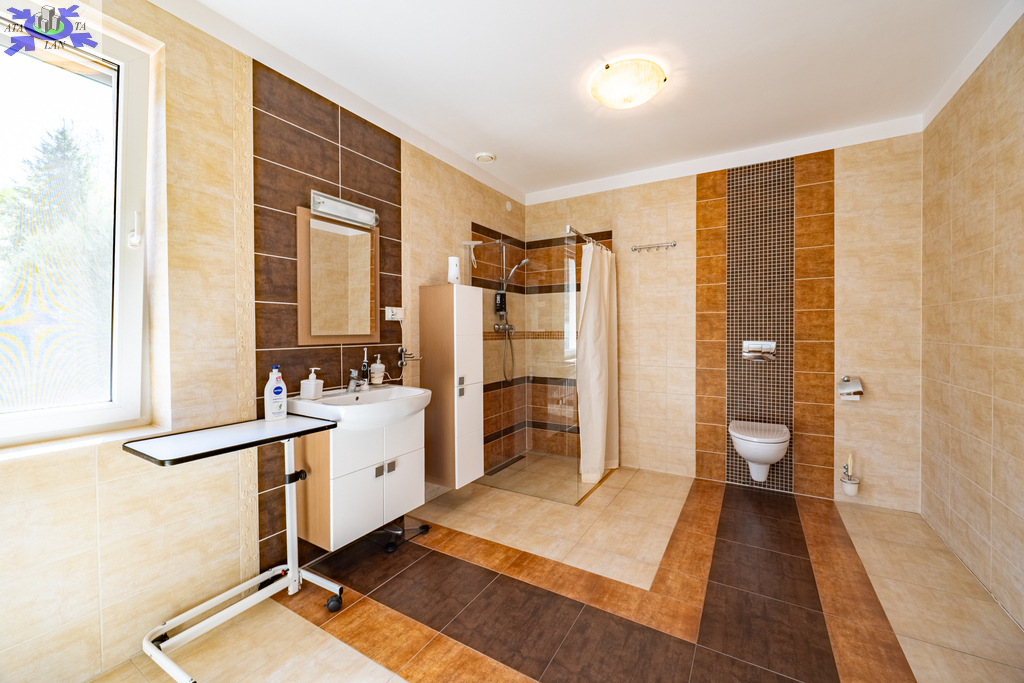 Dom o łącznej powierzchni około 380 m2 (w tym część mieszkalna 320 m2) został wybudowany w 1996 roku i rozbudowany w 2013 roku. Posiada trzy kondygnacje parter, półpiętro, piętro oraz część podziemną (garaż/piwnica).Budynek jest przystosowany do potrzeb osób z ograniczoną mobilnością - wyposażony został w zewnętrzną platformę podnośnikową, która umożliwia wygodny i bezpieczny wjazd do domu z poziomu gruntu.