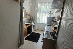 Śródmieście, okolice Placu Zgody. Duże mieszkanie ok. 100 m2 zlokalizowane na drugim piętrze zadbanej kamienicy. Nowa elewacja, klatka schodowa po remoncie, zadbane zielone podwórko. Mieszkanie zostało podzielone na 3 samodzielne kawalerki, każda z kuchnią i łazienką. WC wspólne z wejściem z przedpokoju. Ogrzewanie i ciepła woda z pieca gazowego zamontowanego w przedpokoju. Piec gazowy nowy, nowe instalacje, na ścianach tynki gładzone malowane, na podłogach deska sosnowa. Każda kawalerka ma około 28 m2. Dostępna do wynajęcia jest jedna z nich - zielonymi meblami - pokój 18 m2 i odrębną kuchnią z oknem połączoną z łazienką. W kuchni szafki kuchenne w zabudowie, zlewozmywak jednokomorowy, kuchenka z płytą elektryczną i piekarnikiem elektrycznym, okap, lodówka, pralka, kabina prysznicowa. Koszt najmu wynosi 1700 zł/m-c plus 300 zł koszty czynszu do wspólnoty /woda, internet, telewizja, wywóz śmieci, sprzątanie klatek schodowych/ plus opłaty za gaz i prąd wg. zużycia. Kaucja wynosi 2000 zł.