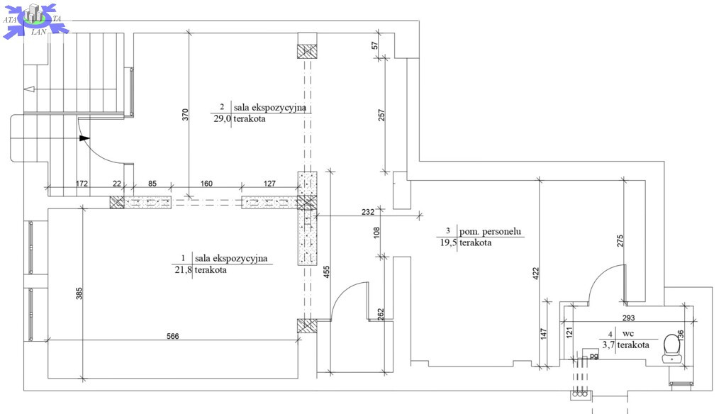 Lokal posiada duże nowoczesne witryny, składa się z dwóch kondygnacji.