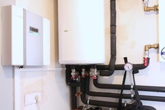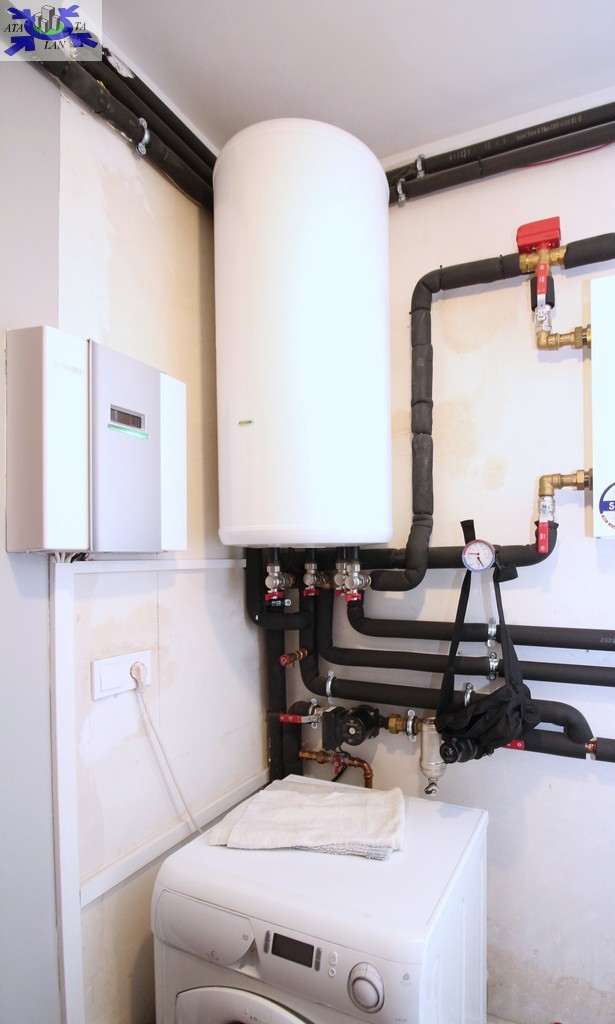Ogrzewanie domu odbywa się poprzez zastosowanie pompy ciepła, natomiast ciepła woda w okresie wiosenno - letnim pochodzi z paneli solarnych.