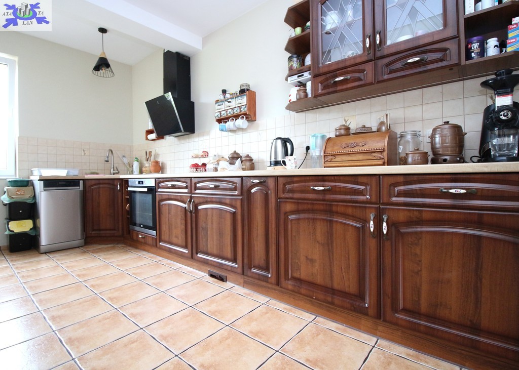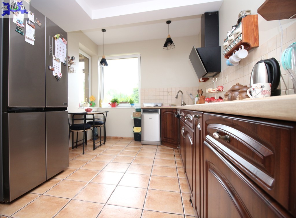 - widna kuchnia z meblami w zabudowie i sprzętami AGD