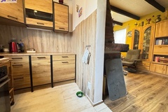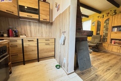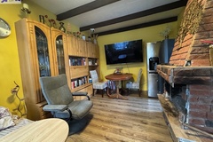Media doprowadzona woda, energia elektryczna, ścieki (zamknięty zbiornik). W domku na górze zrobiono łazienkę z podłączoną bieżącą wodą i podgrzewaczem elektrycznym. Na parterze salon z kominkiem i oddzielna kuchnia.