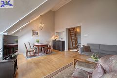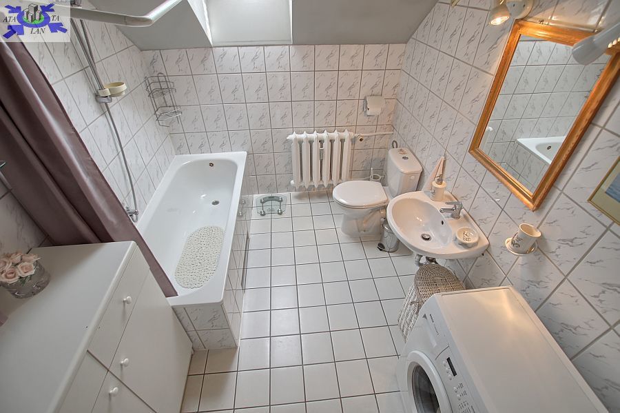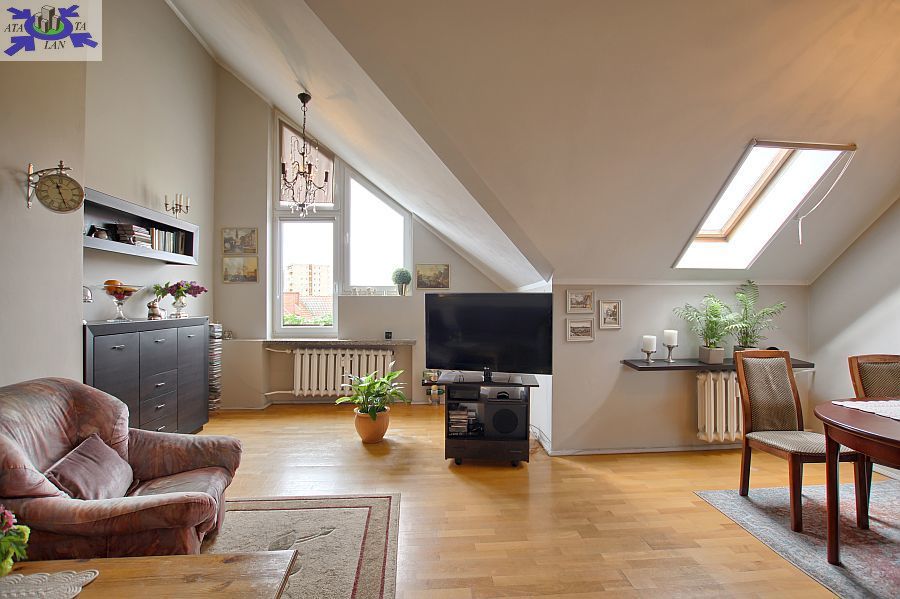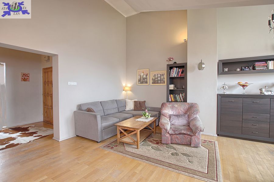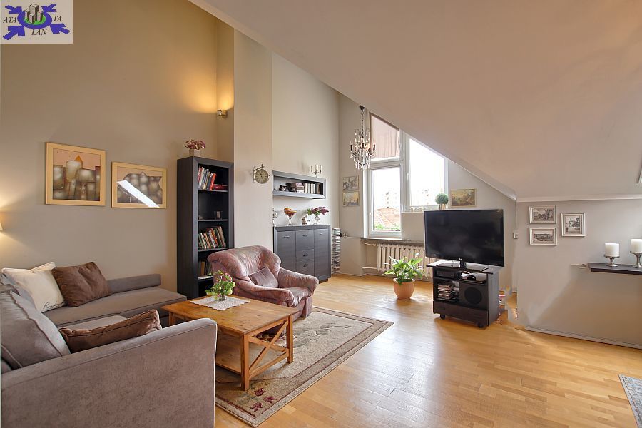 Mieszkanie jest bardzo słoneczne, jasne i ciepłe z przestronnym salonem , który w najwyższym punkcie ma 5 m wysokości, dwiema dużymi sypialniami, odrębną kuchnią , holem i łazienką razem z wc. oraz pomieszczeniem w którym może powstać dodatkowe wc (wykonano podłączenia) lub garderoba. Nad częścią mieszkania znajduje się antresola.