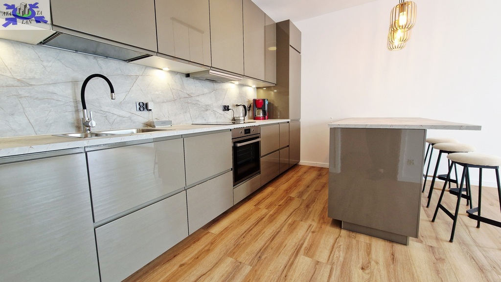 Mieszkanie jest w stanie idealnym jednak wymaga umeblowania we własnym zakresie. W lokalu znajduje się w pełni wyposażona kuchnia. W łazience pralka.