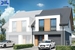 Poszczególne połówki postawione są na działkach o powierzchni 356 oraz 318 m2. Dom wybudowany według projektu Archeon "Dom w riveach 8 (GB)".