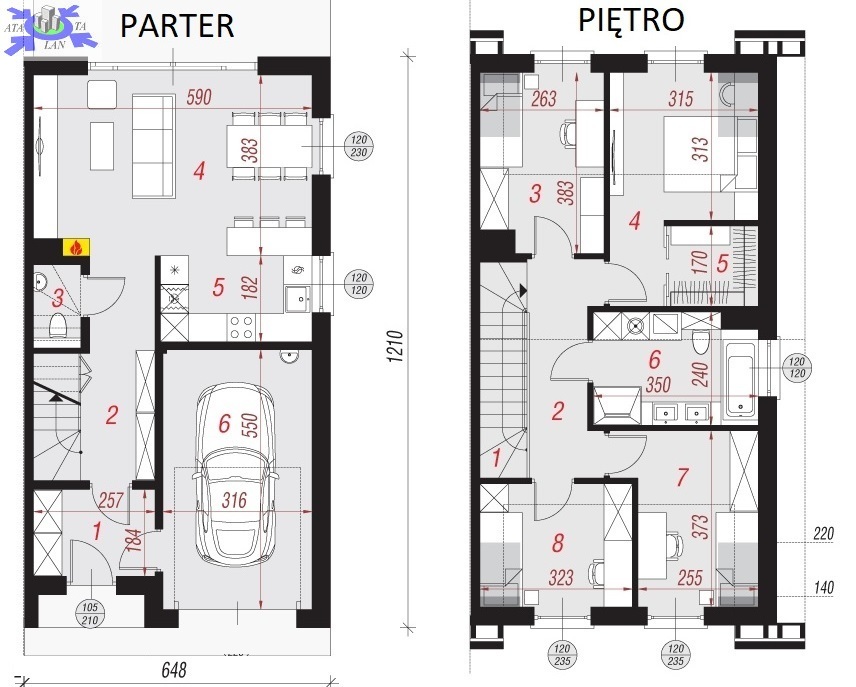- garaż w bryle budynku (17.03 m2).