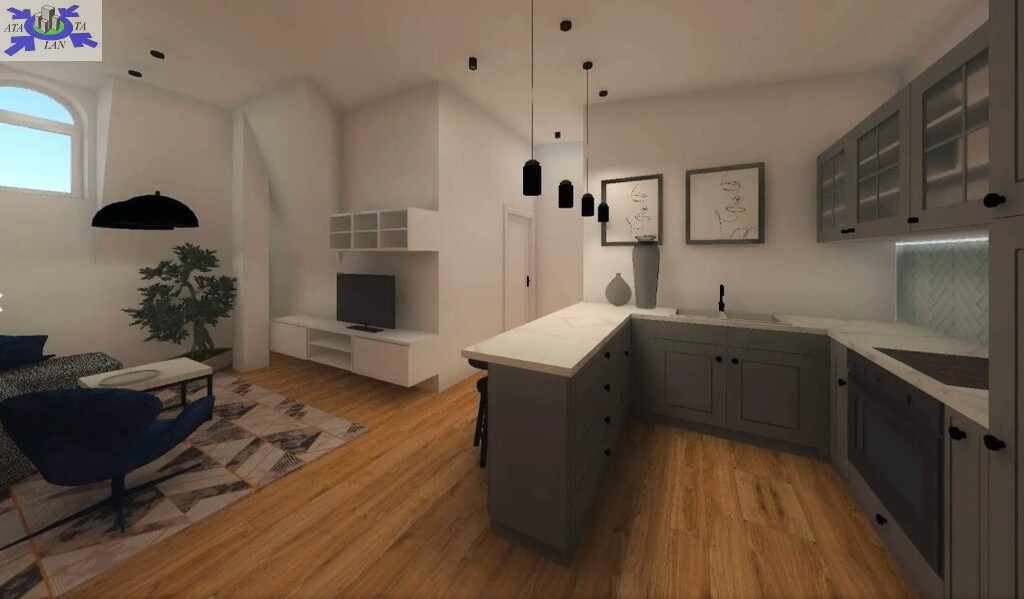 - salon z aneksem kuchennym (33,32 m2)