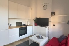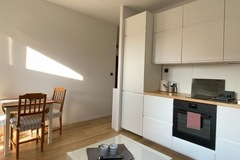 OPIS MIESZKANIA pokój z aneksem kuchennym oraz wyjściem na taras o powierzchni 11 m2. Pokój umeblowany, zabudowa kuchenna wysokiej klasy z urządzeniami AGD (piekarnik, płyta grzewcza, lodówka z zamrażarką)