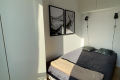 Na antresoli, która nie wlicza się do powierzchni użytkowej mieszkania sypialnia z szafą i łóżkiem.
