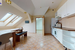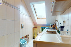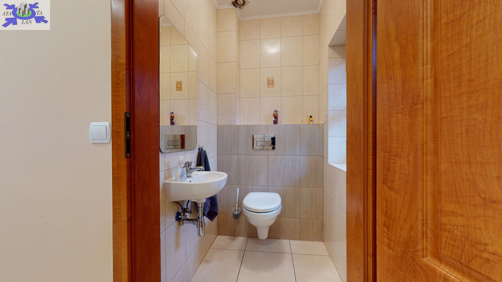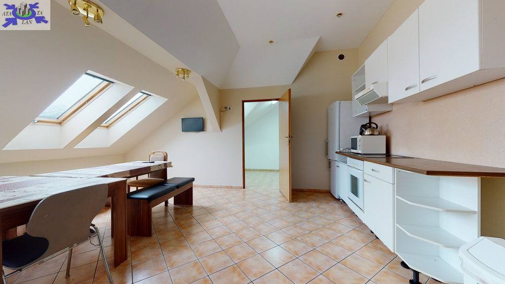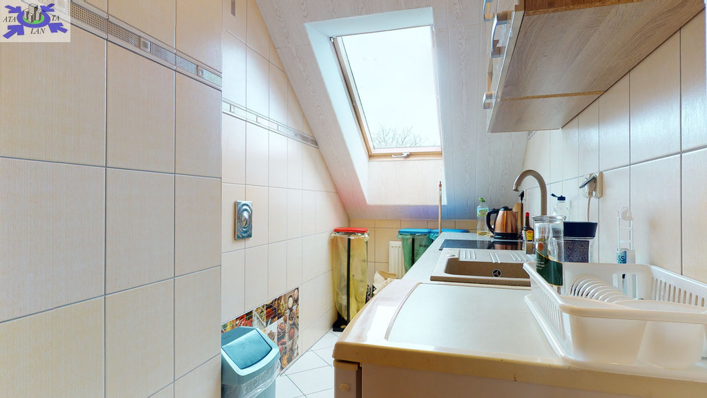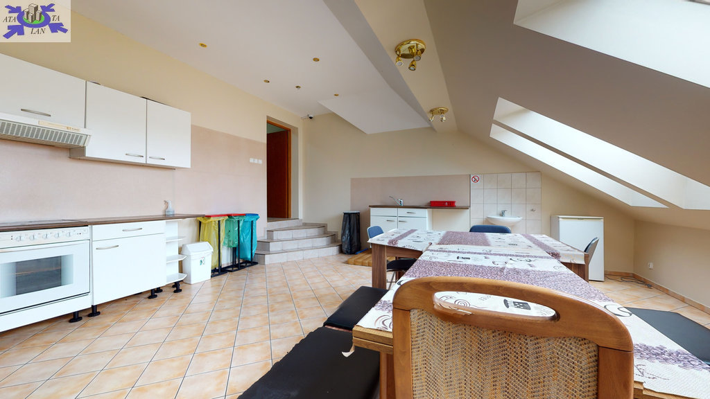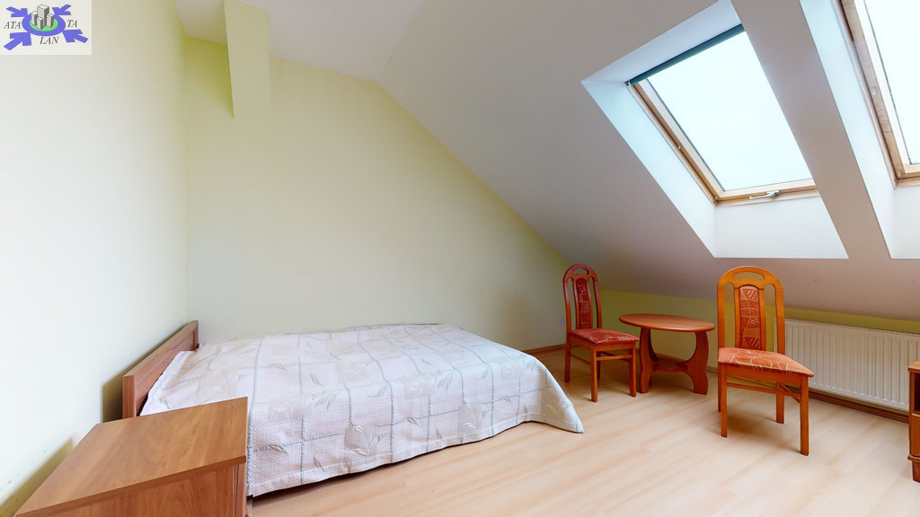 - w budynku wydzielona jest część mieszkalna-parter (kuchnia z salonem, 2 pokoje, korytarz, łazienka) z samodzielnym niezależnym wejściem. Nad częścią mieszkalną znajduje się poddasze (kuchnia, 3 pokoje, łazienka, korytarz).